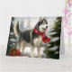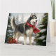 Tarjeta Perro Husky Siberiano en Navidad de Nieve