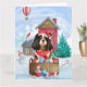 Tarjeta Perro King Cavalier en casa de Navidad con nieve