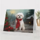 En medio de un maravilloso país invernal, un perro lúdico disfruta de una mañana de Navidades nevados, dejando adorables huellas de pata en la brillante nieve. Su alegría y curiosidad le dan calidez a la encantadora escena de las vacaciones, haciéndola verdaderamente mágica.