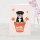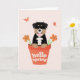 Ilustracion divertido para primavera y verano para todos los amantes del perro. Mostrando un pastor australiano saliendo de una maceta floral rodeada de dos flores y mariposas.