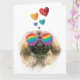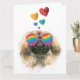 Tarjeta Perro pequinés con corazones Día de San Valentín