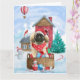 Tarjeta Perro pequinés en casa de perro de Navidad con nie