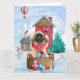 Tarjeta Perro Pequinés en casa de perro navideña con nieve