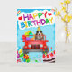 El perro perro de los Hound de Basset conduciendo con globos y tartas de cumpleaños es una tarjeta de cumpleaños perfecta para alguien que ama los perros dachshund. A cualquier madre o padre hetero de Basset le encantará esto.