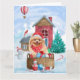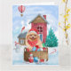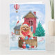 Tarjeta Perro Pomerania en casa de perro de Navidad con ni