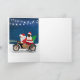 Un Santa Claus montando en bicicleta entregando árbol de Navidad y perro Pug como regalo es una idea de regalo de Navidad perfecta para alguien que ama esta raza de perro.