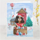 Tarjeta Perro rey caballero en casa de Navidad con nieve