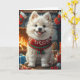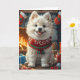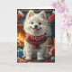 Tarjeta Perro Samoyedo Con Regalos De Navidad Chimenea