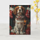 Tarjeta Perro Springer Spaniel con regalo de Navidad en la