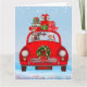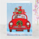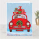 Tarjeta Perro Terrier de Yorkshire en coche con Papá Noel