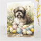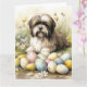 Tarjeta Perro Terrier Tibetano con huevos de Pascua