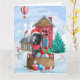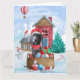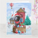 Tarjeta Perro Weimaraner en casa de Navidad con nieve