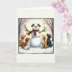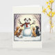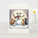 Tarjeta Perros adorables Navidades Snowman con carta de in