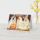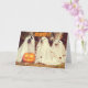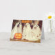 Tarjeta histérica de Feliz Halloween con perros disfrazados de fantasmas