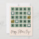 Hazle saber a papá cuánto significa con esta tarjeta de Día del Padre audaz y moderna. Con una cuadrícula divertida de bloques en tonos verdes que deletrean "ERES EL MEJOR PAPÁ DEL MUNDO" con íconos de corazones suaves, esta tarjeta equilibra un diseño limpio con calidez sincera. El mensaje se complementa con una elegante letra que dice "¡Feliz Día del Padre!" debajo. Perfecta para padres que aman un toque elegante en el sentimiento clásico. En blanco en el interior para tu nota personal.