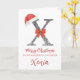 Personalise this pretty Christmas card featuring a glitter effect initial decorated with a santa hat and bow. All the text is editable or removable depending on the message you want to send. Perfect for a Christmas card for her - edit the text for a gorgeous wife, beautiful niece, lovely goddaughter, wonderful daughter, amazing sister or whatever you like!