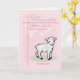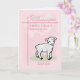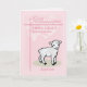 Un cordero dulce está parado sobre un trozo de hierba con la palabra bautismo debajo. Personalizar esta tarjeta rosa para el bautismo de tu bisnieta. ¡Añade su nombre y la fecha en que fue bautizada como una hermosa tarjeta de keepsake!