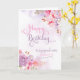 La acuarela floral rosada/púrpura y los lavados en la parte delantera de la tarjeta tienen "Feliz cumpleaños a mi hermana especial" en una bonita y rápída fuente, y un lugar para insertar el nombre de la hermana. Diseñado por Simply Put por Robin usando elementos de The Hungry Jpeg.