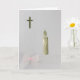 Tarjeta Personaliza el oro Sagrada cruz, vela y arco rosad