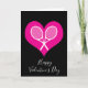 Tarjeta de San Valentín rosa y blanca de persona que ama el tenis. Inserte su propio mensaje dentro. Fondo negro con corazón rosa