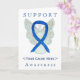 El saludo de ángel de la guarda o la tarjeta de nota muestra la imagen de un cuadro de ángel de la cinta de reconocimiento azul. La tarjeta dice "Apoyo<Your Cause Here>Conciencia". ¡Añade tus propias palabras o mensajes opcionales a la tarjeta de felicitación para los ángeles de arte personalizados y para los guardianes de la conciencia! También puede eliminar el texto de las tarjetas de notas de ángel de sólo arte. Las tarjetas de felicitación de arte de la cinta azul de los ángeles de conciencia se pueden personalizar con mensajes personalizados para crear una gran conciencia de la causa de las tarjetas de arte para recaudadores de fondos, regalos de concientización u otros eventos especiales. Dé esta tarjeta de arte de ángel como regalo para cualquier ocasión.