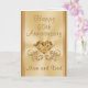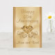 Tarjeta personalizada de oro para el 50 aniversario de bodas para padres. Escribe tu mensaje especial de aniversario número 50 para tu mamá y papá en el cuadro de texto a la derecha (Haz clic en "abc Personaliza esta plantilla"). Hermosos colores dorados sobre dorado para representar el aniversario de bodas de oro de tus padres. LLAMA a la diseñadora Linda: 239-949-9090 para crear regalos personalizados y suministros para fiestas de aniversario de bodas número 50 a juego.