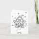 Tarjeta de Navidad con una linda casa de pan de jengibre dibujada a mano en la parte frontal. La parte trasera tiene una página para colorear. En el interior puedes personalizar tu saludo navideño y agregar tu nombre.