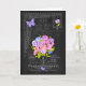 Esta tarjeta con un aspecto lujoso tiene ilustraciones de flores dibujadas a mano de ramos de flores de cumpleaños y piedras de nacimiento brillantes para cumpleaños de abril, aniversarios y días especiales. Pizarra negra con grabados antiguos de herrajes decorativos proporcionan un fondo nostálgico para los ramos de flores, gemas y mariposas enjoyadas.