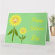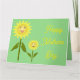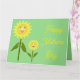 Esta increíble tarjeta del Día de la Madre presenta una imagen de diseño gráfico de un hermoso girasol amarillo con tallo y hojas verdes y girasoles amarillos brillantes. El girasol Madre tiene ojos amables y una sonrisa en su rostro. Hay un girasol más pequeño junto a la flor Madre y su hoja está tocando la hoja del girasol hijo ofreciendo amor y apoyo. Un hermoso diseño para cualquier Madre en el Día de la Madre. Hay texto personalizable dentro para que puedas personalizar esta tarjeta con tu propio mensaje.