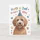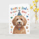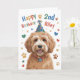 Esta linda tarjeta de cumpleaños de perro de 2º cumpleaños incluye un lindo perro de Goldendoodle en una imagen gorra de cumpleaños. En la parte delantera, puede personalizar agregando el nombre de la persona que recibe esta tarjeta de cumpleaños. Puedes cambiar el año si quieres (por ejemplo, en lugar de "3er" cumpleaños podría decir "2do" cumpleaños). El gracioso pero lindo mensaje en el interior de esta tarjeta dice "¡Espero que tu cumpleaños sea una patada-increible!". ¡Disfruta de esta tarjeta de cumpleaños del cachorro Goldendoodle!