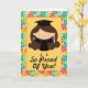 Esta tarjeta adorable de la graduación es perfecta para los diplomados de High School secundaria, los graduados de la universidad, la graduación de la guardería y más. El graduado lindo del chica que sostiene un diploma con el fondo florecido brillantemente coloreado tiene tan orgulloso de usted sentimiento.