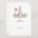 Tarjeta personalizada de baby shower de Peter Rabbit en acuarela rosa. Artículos a juego disponibles.