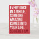 Aquí estoy Ingenioso Sarcástico Romántico Humor Tarjeta divertida del Día de San Valentín - "De vez en cuando, alguien increíble entra en tu vida. Así que aquí estoy." en fondo rojo y sutil estilo "Aquí estoy" en rojo oscuro.
