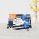 Una tarjeta de cumpleaños personalizado super genial que a cualquier niño le encantaría. Se usaron colores vivos. Bandas negras y blancas audaces y modernas, un diseño de gingham verde fresco y un joven feliz. Añade nombre, año de cumpleaños, tu mensaje, tu nombre y la fecha en la parte de atrás. ¡Una tarjeta única que será apreciada!