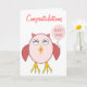 Esta bonita tarjeta Día de San Valentín tiene un personalizado adorable de un búho rosa con ojos somnolientos, un gran pico abierto y lindas plumas esponjosas. El búho está sosteniendo un globo rosado de burbujas. Hay un texto rosa bonito dentro del globo que dice "Niña bebé". Este es el regalo perfecto para celebrar a una bebé recién nacida. El interior de la tarjeta tiene texto de personalizable para que puedas escribir tu propio mensaje personal.