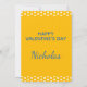 Esta colorida tarjeta de saludo cuenta con dos divertidos cactus personalizados enamorados, sobre un fondo blanco. La leyenda, en caligrafía azul y todos los tipos de letra amarilla, dice que aún te abrazaría aunque fueras un cactus. La parte trasera de la tarjeta es amarilla, con los bordes de los puntos de polka, y está completamente en personalizable con tus saludos de San Valentín y tu nombre.