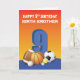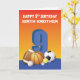 Golpear alrededor de unas divertidas bolas de felicitación de cumpleaños para un chico especial que está celebrando su noveno cumpleaños. La única manera de hacerlo es dándole esta tarjeta. Esto también viene con una relación personalizada en el frente.