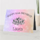 Tarjeta de cumpleaños 85º personalizada Lotus Flower Pink y Purple Sparkly de lujo.