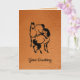 Pintura de tinta de estilo asiático de dos caballos sobre un fondo falso de cuero. Personalizar con su propio saludo y mensaje. Esta tarjeta sería genial para el cumpleaños de un hombre, el Día del Padre, etc.