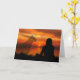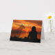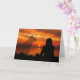 Una tarjeta de pésame conmovedora y emotiva para una mascota perdida que muestra la silueta de una mujer mirando hacia una hermosa puesta de sol y la tenue imagen de una presencia fantasmal de un perro que se mantiene cerca para hacerle compañía.