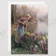Este diseño presenta un cuadro del artista estadounidense Daniel Ridgway Knight (1839-1924). Muestra a una hermosa joven sosteniendo una barra de pesca de madera en su mano. Ella se está asomando al río para ver si ha pescado. Hay flores florecientes en colores brillantes a su alrededor. También hay algunos peces por sus pies que ya ha pescado. Es una atractiva escena de la vida tradicional y de la pesca de cosecha.