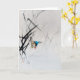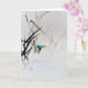 Tarjeta Pescador de Kingfisher atrapando peces entre junco