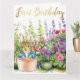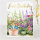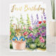 Tarjeta Peter el Conejo en la planta de olla en su jardín