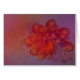 Un patrón fractal repetido como las plumas flameantes del mítico ave de fuego. Baños de vivos naranjas, morados y dorados contra una lavanda muda y naranja pálido y fondo rosa.