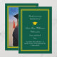 Parents or guardians proudly announce the graduation of a child with this card. Photo and Lime Green background with gold borders. The photo and all text are easily changed with the template. Selecting “Personalize this design” offers you several edit options to easily change the text (wording, plus type font, color, size, position) and to edit the design elements. You may also want to scroll down to the section “Transfer design to a product” for a few suggestions about other items this design can be used on. Downloadable for sending by phone or email.