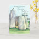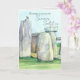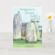 Envía felicitaciones por el solsticio de verano con esta tarjeta que presenta una sección de Stonehenge con un pequeño mirlo vigilando en la parte superior, dibujado a mano con tinta y acuarela. En el interior hay un tono suave de gris y texto que se puede editar para adaptarse a tus necesidades.