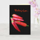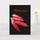 Esta tarjeta de amistad presenta brillantes chiles de chile rojo escarlata sobre un fondo negro puro. Hay más pimientos dentro. El texto se puede personalizar para adaptarlo a sus necesidades.
