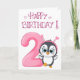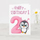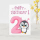Tarjeta Pingüino Adorable Feliz 2do Cumpleaños