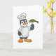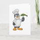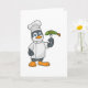 Tarjeta Pingüino como cocinero con delantal de pescado y c