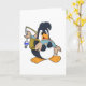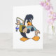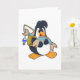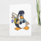 Tarjeta Pingüino como pescador con pez